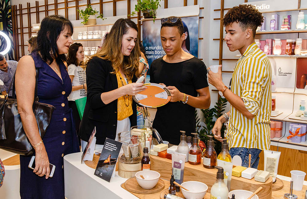 O novo conceito de loja também busca reforçar o convite da marca para a construção de um mundo mais bonito, com um ponto para logística reversa. Ali, o consumidor poderá retornar a embalagem de qualquer produto cosmético já utilizado, que será transformado em novos frascos de produto. Atualmente, por meio do uso de plástico reciclado em embalagens de linhas como Ekos e Sève, a Natura já evita que o equivalente a 9 milhões de garrafas PET sejam descartadas no meio ambiente anualmente.