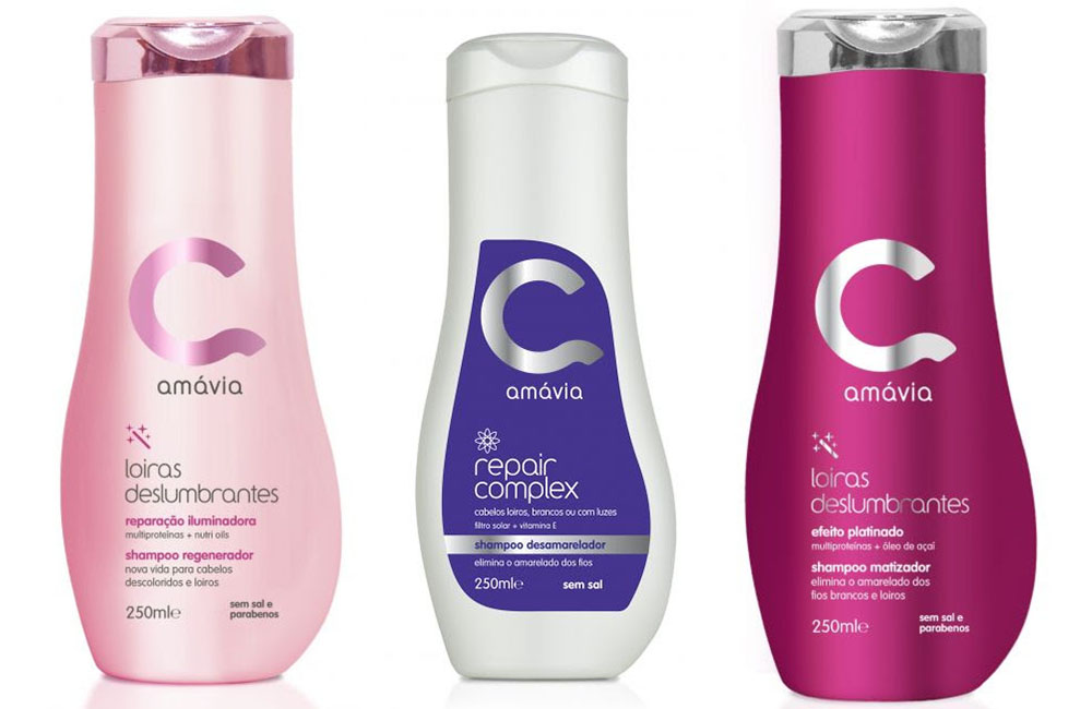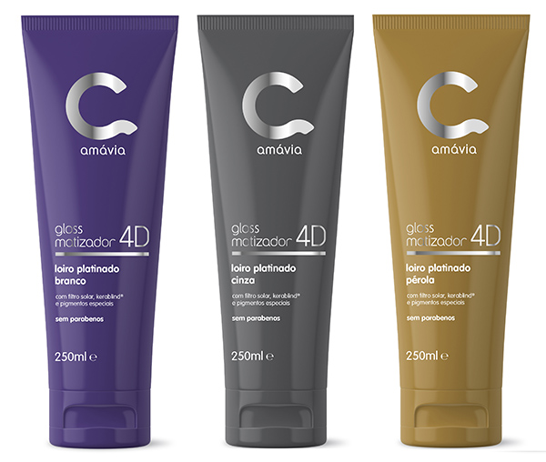 Errar no matizador – Atualmente a oferta de produtos com pigmentos azuis ou violetas é grande, mas poucos evoluíram para atender diferentes tonalidades de loiros e, principalmente, recuperar e não ressecar os fios. A Amávia criou gloss matizadores 4D enriquecidos com filtro solar e Kerablind® com três opções: Loiro platinado branco, Loiro platinado cinza ou Loiro platinado pérola.