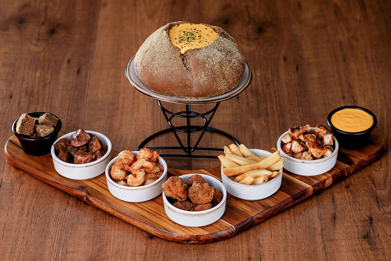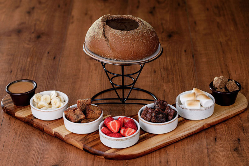 No lugar da tradicional panela de fondue, quem chega à mesa é o icônico pão australiano do restaurante, em formato de bowl, recheado com um creme de queijo cheddar derretido ou com calda de chocolate quentinha. A opção salgada é servida com filet mignon em tiras, cubos de frango grelhados, camarões empanados ao estilo Outback, fritas e os Ribs Royal Bites (cubos de Ribs empanados no mix de temperos da cebola Bloomin’ Onion).