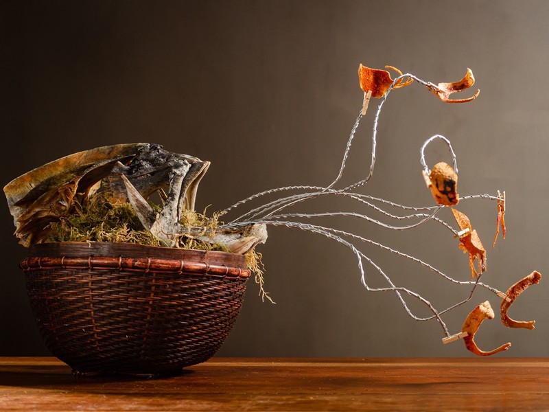 O alho negro também faz parte do novo menu. “As cabeças de alho são mantidas a 60°C durante 24 dias. Ao contrário do que se pensa, não sofrem fermentação. Elas passam pelos processos de caramelização e reação Maillard – equivalente à caramelização nas proteínas”, explica Dante. Chá de alho negro e semmetknuddel.
