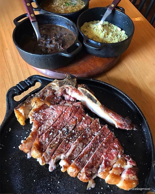 Txuletón (contrafilé maturado a seco) com piquillos de Lodosa e batatas fritas