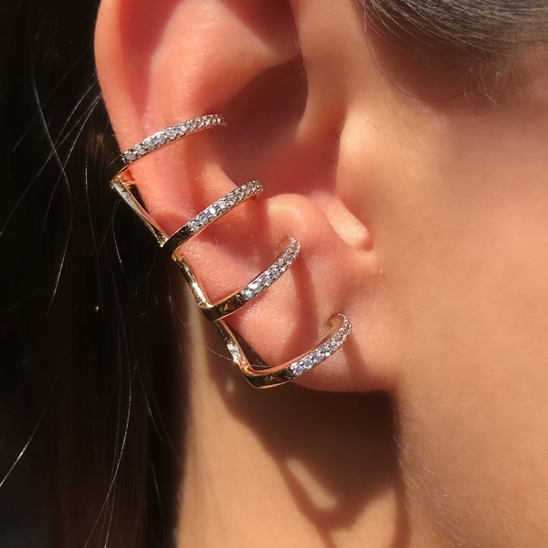 O ear cuff é um tipo de brinco que cobre toda a orelha, dando a impressão de vários brincos colocados juntos. Essa peça que surgiu nas passarelas é uma tendência que se moderniza a cada estação.