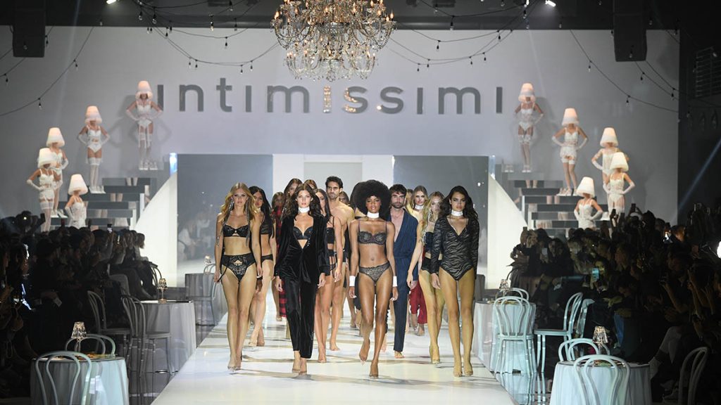 Uma paleta branca pura, cria a ardósia em branco perfeita, o pano de fundo contra o qual cada mulher pode projetar uma visão de si mesma. A experiência foi imersiva para o público, graças aos artistas espetaculares que criaram performances personalizadas envolventes para o evento, uma série de atos cativantes ao vivo, verdadeiros vivants que tornaram a visão da Intimissimi de uma Folies Bergère moderna e contemporânea ainda mais fascinante.