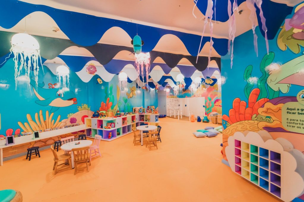 Jogos, brinquedos e massinha estão acomodados em estantes e garantem momentos de entretenimento e muita diversão na brinquedoteca, que promete muita diversão com a Turminha.