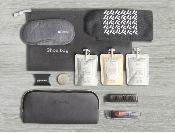 Melhorar a experiência do cliente sob uma perspectiva de compromisso e respeito ambiental levou a Air Europa a oferecer aos seus passageiros da classe Business um novo kit de conforto, no qual todas as embalagens plásticas foram substituídas por materiais recicláveis e ecológicos. O novo kit de amenidades representa redução anual de uma tonelada de resíduos plásticos, pela companhia aérea.