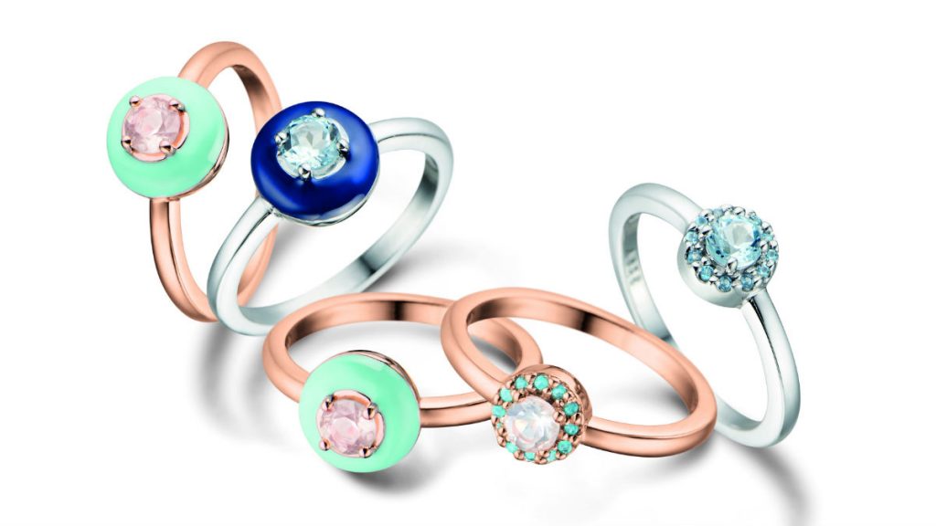 Com o mood elegante e clássico, a linha Encanto traz joias que inspiram o universo da cerâmica. Seus anéis, brincos, pulseiras e pingentes resgatam a tendência do tom de menta de maneira versátil e única.