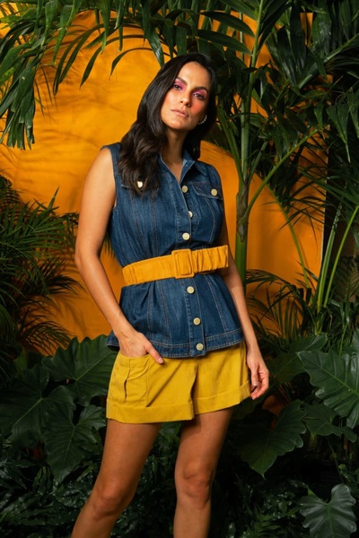 Sucesso na moda dos anos 80, o colete jeans volta trazendo novas roupagens e moods para a temporada. Versátil, a peça pode ser usada de diversas maneiras, sendo ideal para combinar com tons mais vibrantes, como o roxo e o amarelo. A junção transmite personalidade para o styling.