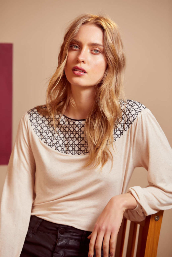 A marca carioca aposta em looks atemporais e sofisticados para compor looks alegres, mas que tenham fit com o Inverno. Um dos pontos altos da coleção é a linha de Tricot, que aparece com modelos exclusivos feitos a partir da reutilização de lã, com aplicação de aviamentos antigos da marca, trazendo uma releitura de sua história além de um “Q” sustentável.