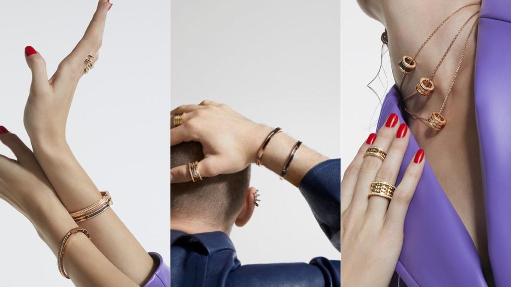 Originários do icônico anel, – disponível em duas versões, – pingentes com correntes novas e geométricas, pulseiras e brincos também evocam a imagem audaciosa e disruptiva da B.zero1 ROCK. Uma nova proposta de joias capazes de empoderar pessoas. Um estado de espírito rebelde que gera beleza e esplendor. Tudo em nome da atitude única e sem precedentes da Bvlgari.