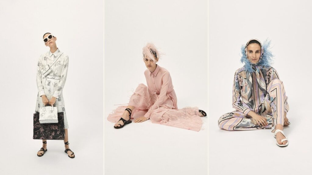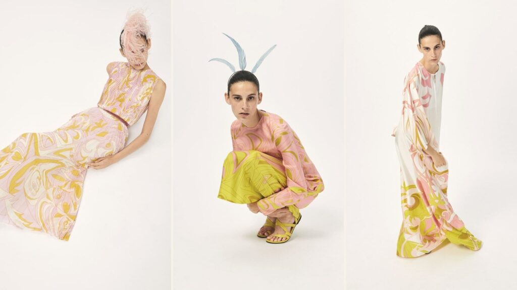 A coleção resort 21 da Emilio Pucci traduz os códigos da Maison: a simplicidade e a sofisticação se encontram com a feminilidade e a jovialidade para reinterpretar a identidade Pucci de hoje. São celebrados os principais ícones do guarda-roupa feminino, como pijamas, kaftans e camisas, com uma leveza chique que faz parte do DNA da Emilio Pucci, de uma forma autêntica com estilo e elegância. A silhueta minimalista e limpa indica uma atitude mais relaxada e casual.