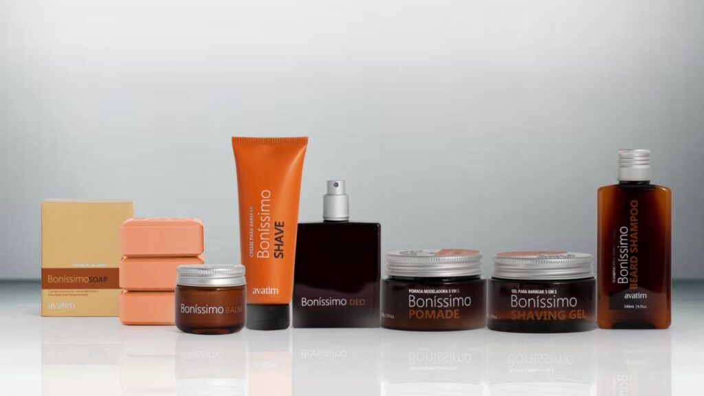 Shampoo para barba e cabelos, creme para barbear, gel para barbear, balm pós-barba, pomada modeladora de barba e cabelos, sabonete em barra e ainda os acessórios cumbuca e pincel compõem essa linha masculina.