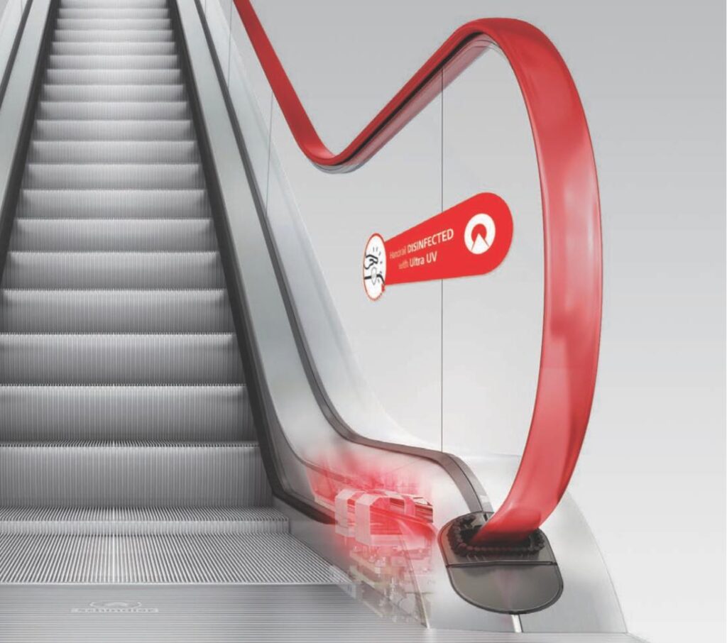 O Dispositivo Ultra UV para corrimão irradia luz ultravioleta com ação germicida e esterilizadora a uma curta distância do corrimão, agindo diretamente no material genético de bactérias e vírus, inclusive da Covid-19, oferecendo uma desinfecção segura, rápida e mais agradável ao usuário, sem vestígios dos convencionais produtos de limpeza.
