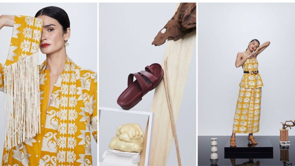 2- A Cápsula Pachamama, explora o bordado Nativa Amarillo, desenhado a mão no ateliê da marca e inspirado pela arquitetura solar do Luiz Barragán;