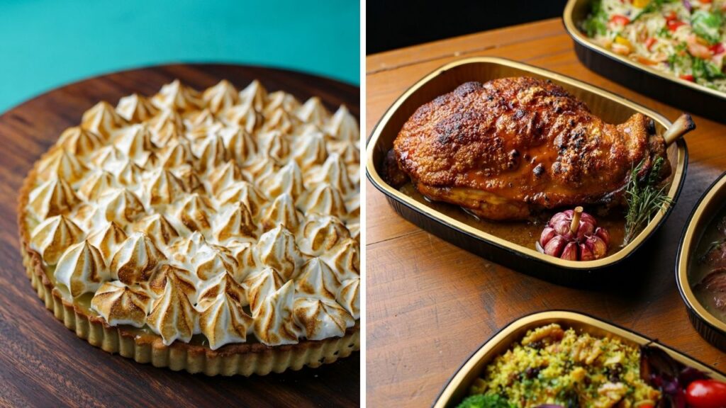 As sobremesas são uma festa à parte: Bolo toscano; Pão de ló de nozes; Crostata de crumble de goiabada e Torta de limão siciliano.