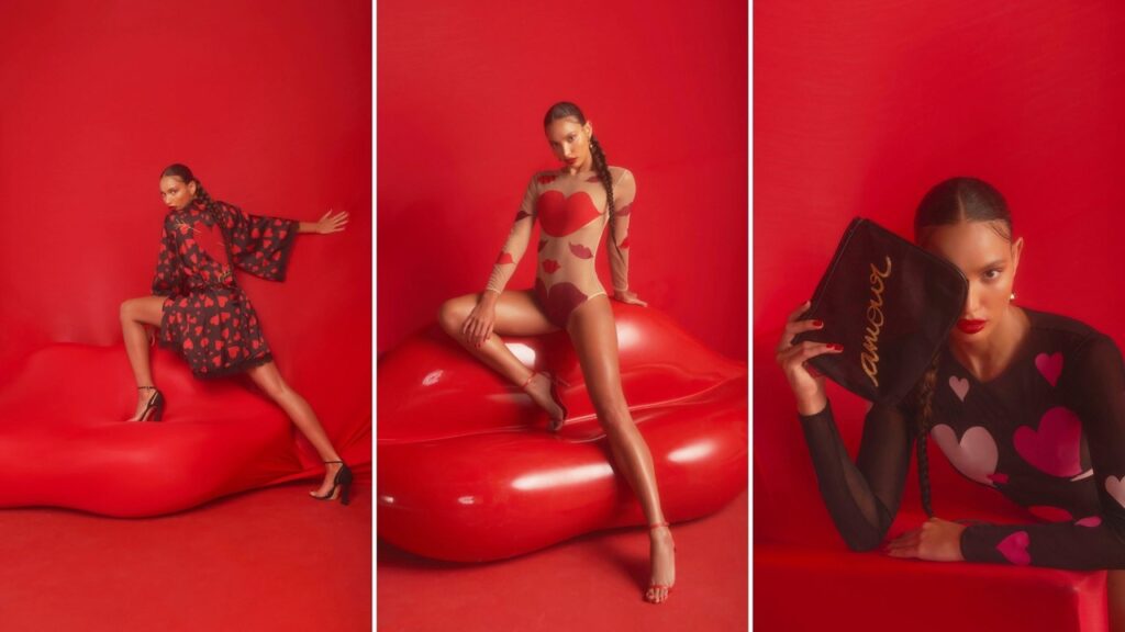 Com uma missão nada fácil nas mãos, Alexia trouxe ícones de bocas e corações desenhados a mão e inseridos em locais estratégicos nos produtos. “Essa é uma coleção especial porque eu nunca tinha trabalhado com lingerie e loungewear, então eu tentei colocar meu universo artístico em um contexto para me aproximar mais das mulheres no dia a dia e isso é muito especial nesse sentido. Super interessante ter que tentar colocar os elementos do meu universo para algo mais cotidiano”, explica Alexia.