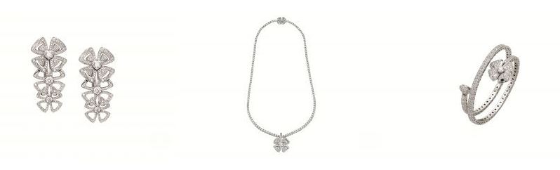 Mais uma vez levando sua abordagem criativa e inventiva à arte da manufatura a novos níveis, a Bvlgari introduz um exclusivo acabamento em ouro branco e diamante feito de duas joias modificáveis. O gracioso colar em pavé-set, com mais de 6 quilates de diamantes, é terminado com um pequeno fecho em forma de flor, enquanto seu emblemático pingente segurando um diamante brilhante cortado em seu coração, pode ser facilmente estilizado em um broche cintilante.