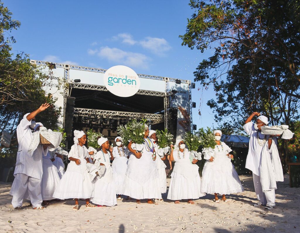 Foi em clima praiano e pé na areia, com direito a um belo cortejo de baianas, que foi realizada, pela Forte Produções, On line e Rebeca Cavalcante, na tarde do último domingo, 31, a 1ª Lavagem do Praia do Forte Garden, o novo espaço de eventos do Litoral Norte.