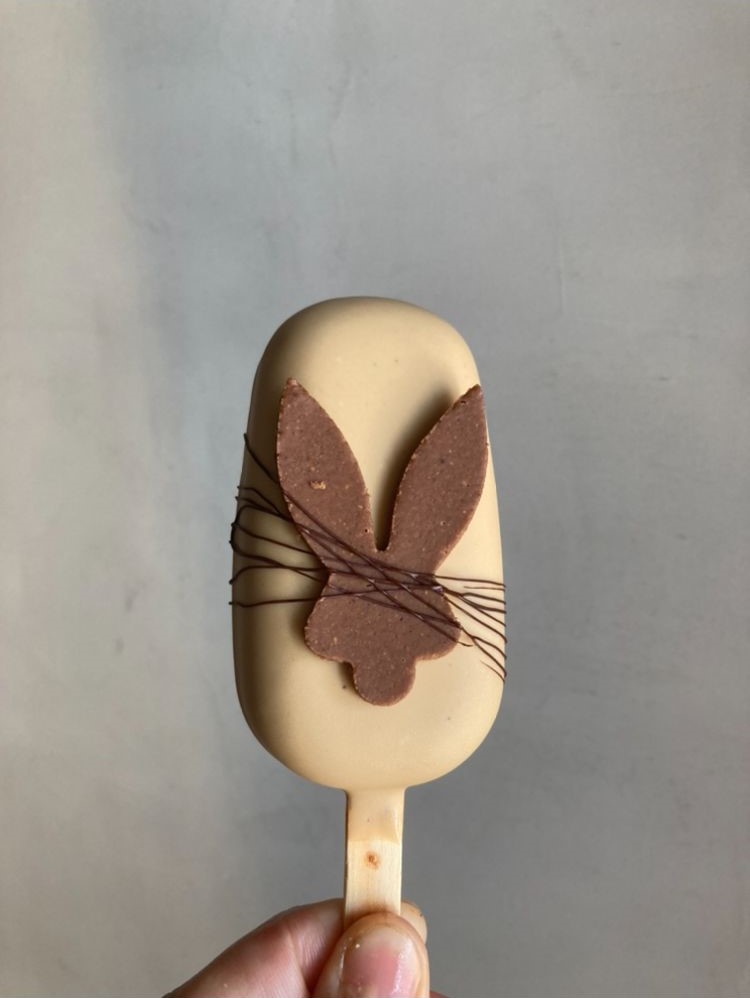 Além do bacalhau, o picolé de Páscoa também será uma exclusividade da data: picolé de 3 chocolates, com praliné de amêndoas e caramelo.