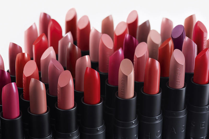 Os batons estão disponíveis em 11 cores, tendo tanto tons nudes e clássicos quanto vermelhos vibrantes.