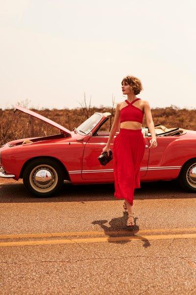 Marcada por cores cheias de vida, como rosa, azul, verde e laranja, que contrastam com peças sofisticadas em tons neutros, a coleção apresenta versatilidade para qualquer aventura. São croppeds, camisas amplas, calças pantalonas, conjuntos, saias, macacões e vestidos longos e minis com designs únicos para trazer conforto na estação mais quente.