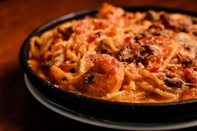 Frittata de spaghetti a napoletana com camarão