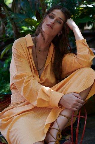 Com roupas que transitam com facilidade do litoral à cidade, o editorial aposta em roupas fluidas e cheias de cor, com detalhes e recortes ideais para a temporada mais quente do ano. Novas texturas, pesos e acabamentos em fibras como algodão, linho e viscose aparecem em diferentes pesos, tramas e construções.