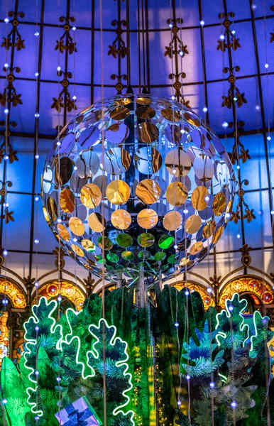 E, assim como ocorre desde 1976, o ponto alta do décor é uma imensa árvore natalina montada sob a cúpula neobizantina da loja.