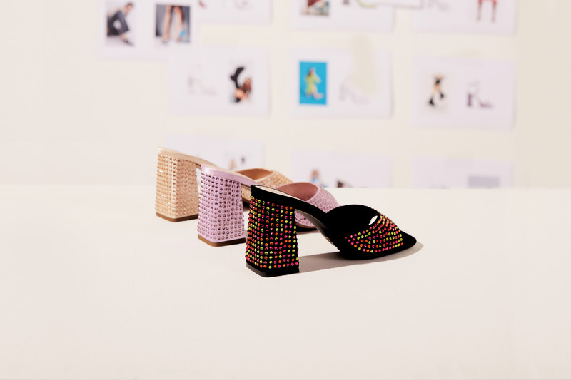 A marca também explora peças com um ar mais pop e descolado, que trazem elementos jovens em todos os seus detalhes, como os saltos em acrílico. As mais glamourosas, podem contar com muito brilho e neon, além de shapes modernos.