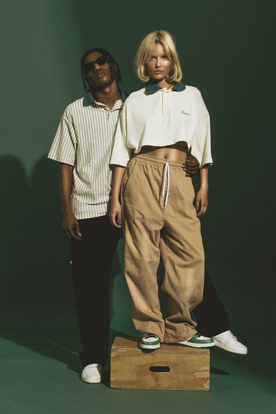 Marca registrada do estilo preppy, os cardigans e os conjuntos de camisa e shorts listrados aparecem como grandes destaques do drop, assim como as camisas polo listradas, regatas de ribana, conjuntos esportivos e as calças de alfaiataria.