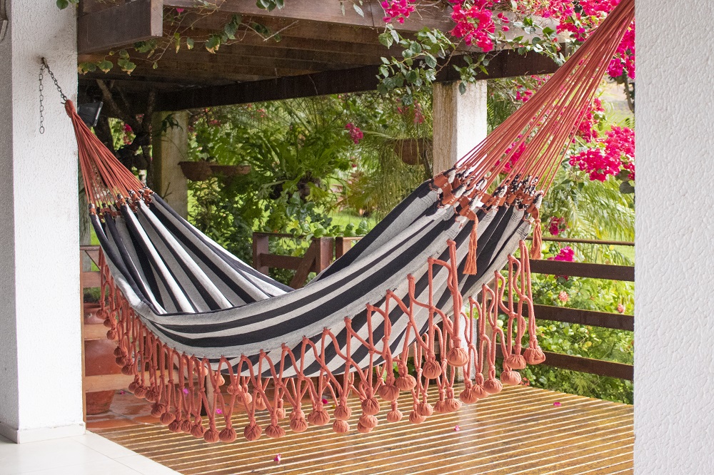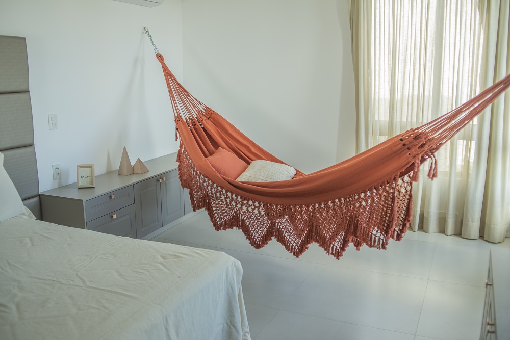 Não importa onde são instaladas, o fato é que as redes proporcionam uma atmosfera leve, brasileira e descontraída, não é mesmo? Com origem indígena – os seus primeiros registros são a partir do século XV, como na carta de Pero Vaz de Caminha – a rede de dormir (ou descanso) ganharam os casarões das fazendas com a chegada dos portugueses, já que as mulheres dos colonos adaptaram tal técnica.