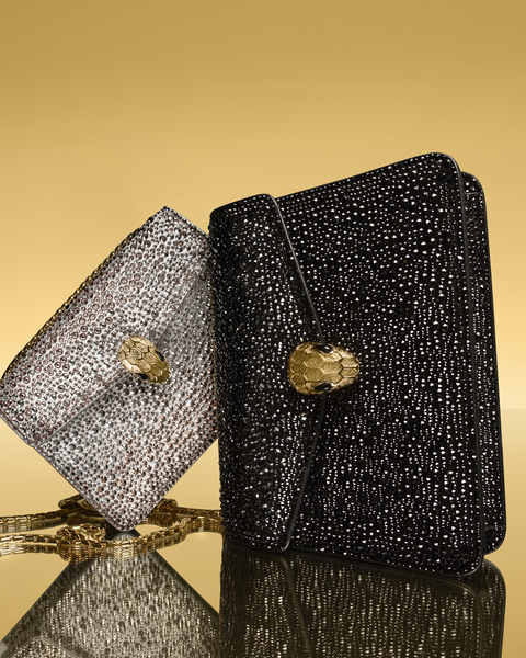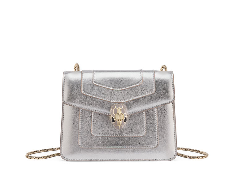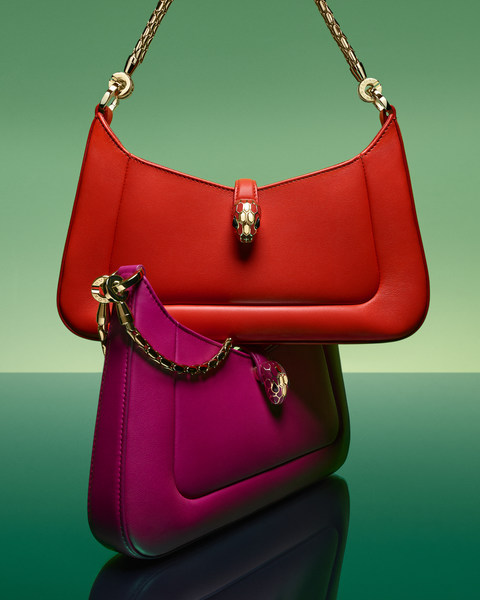 A linha VIBRANT SUMMER, chega nas boutiques Bulgari a partir de maio de 2023 e traz novos tratamentos de materiais. Alguns dos estilos mais icônicos da família de cobras da Bulgari – do Serpentine Vertical Tote ao Serpentine Pouch e o Serpenti Forever East-West – retornam em brilhante Prata Estriado ou resplandecente Couro de bezerro espelhado prateado.