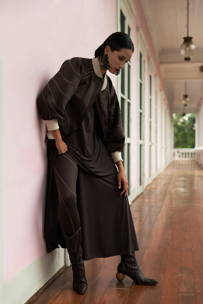 Inspirada na cultura e na singularidade da Colômbia, a marca mantém seu propósito de desenvolver uma moda sustentável em toda a sua cadeia produtiva, de forma consciente e ética. Confeccionadas em jersey com fio biodegradável e tecido V50 antiodor, as peças não amassam.