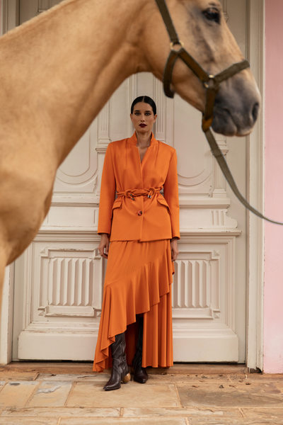 A coleção Caminho das Pedras aposta em blazers, saias, vestidos longos e muita estampa.