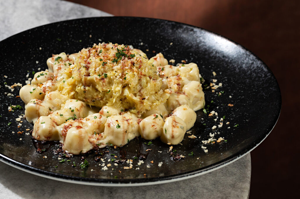 Para prato principal, a sugestão para o horário de almoço fica por conta do Gnocchi di Baccalà (R$ 89). Produzido artesanalmente na casa, o nhoque é servido com bacalhau amanteigado, fonduta de quatro queijos e finalizado com redução de vinho tinto e farofa de ervas finas.