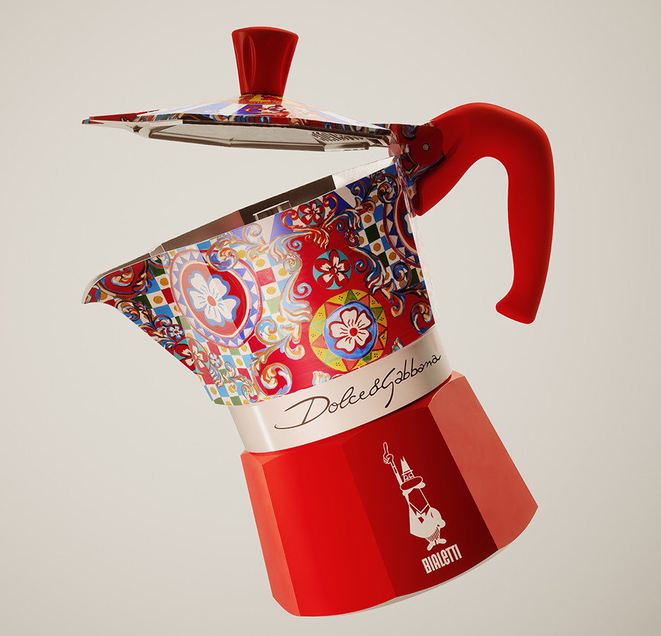 A MOKA DOLCE & GABBANA é exclusivíssima. Cada uma das cafeteiras da coleção têm uma decoração única. Elas têm uma matriz em comum, como base para sua estampa. Mas, a aplicação dos desenhos não se repete de maneira uniforme.