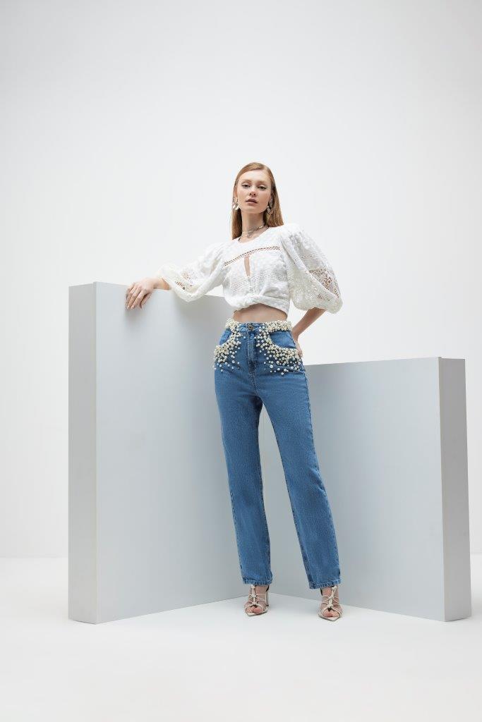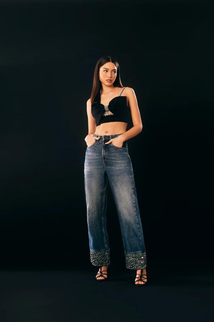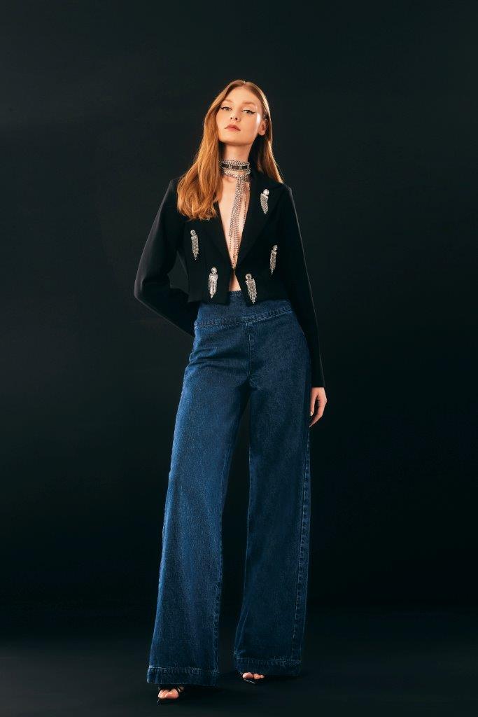 “As aplicações são a maneira perfeita de destacar qualquer peça básica, e com o jeans não é diferente. Existem diversos jeitos de trazer detalhes e enriquecer o denim. Alguns exemplos são as tachinhas, spikes, bordados com pérolas e miçangas colocados nos bolsos, cós e até na barra das mais diferentes roupas. Caso queira investir em itens nesse estilo, a dica é fazer um mix com peças mais neutras e sem muita informação como camisas e t-shirts lisas.”