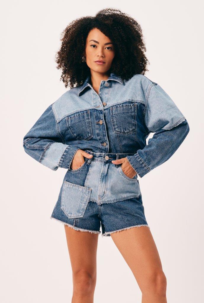“Essa é uma tendência que sou apaixonada! Adoro a combinação de um tecido com lavagem mais escura e um com lavagem mais clara na mesma peça. Para a coleção de inverno da Dimy de 2023, quisemos trazer esse mix através do patchwork. Sou suspeita para falar, mas para quem busca um visual descolado, moderno e com informação de moda, o mix de jeans é a escolha perfeita.”