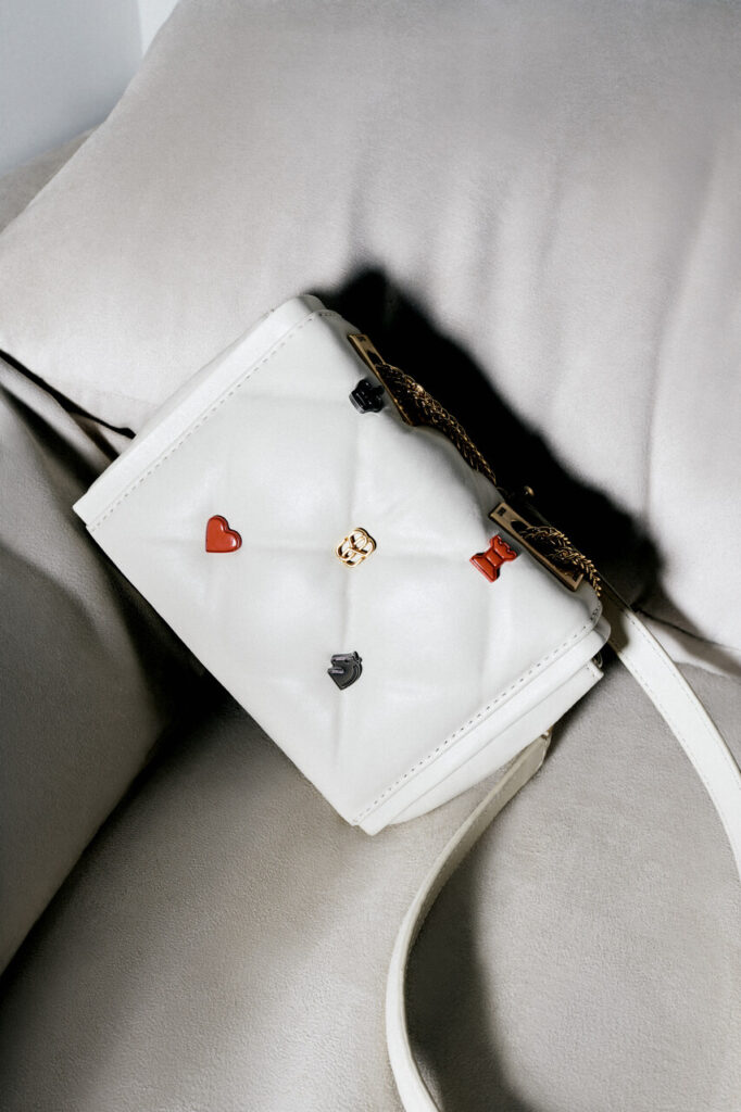 Com shapes marcantes e pedrarias, os produtos elevam qualquer look para algo sofisticado e com destaque. As aplicações são o grande destaque tanto em bolsas quanto nos calçados, oferecendo detalhes únicos e especiais, se tornando a opção perfeita para presentear e deixar esse dia ainda mais apaixonante e carinhoso. A linha glam também é um dos pontos focais dessa coleção de namorados, com a clássica bolsa 944, que ganha aplicação de delicados cristais em todo o shape, mas mantém a identidade icônica em linhas que lembram triângulos.