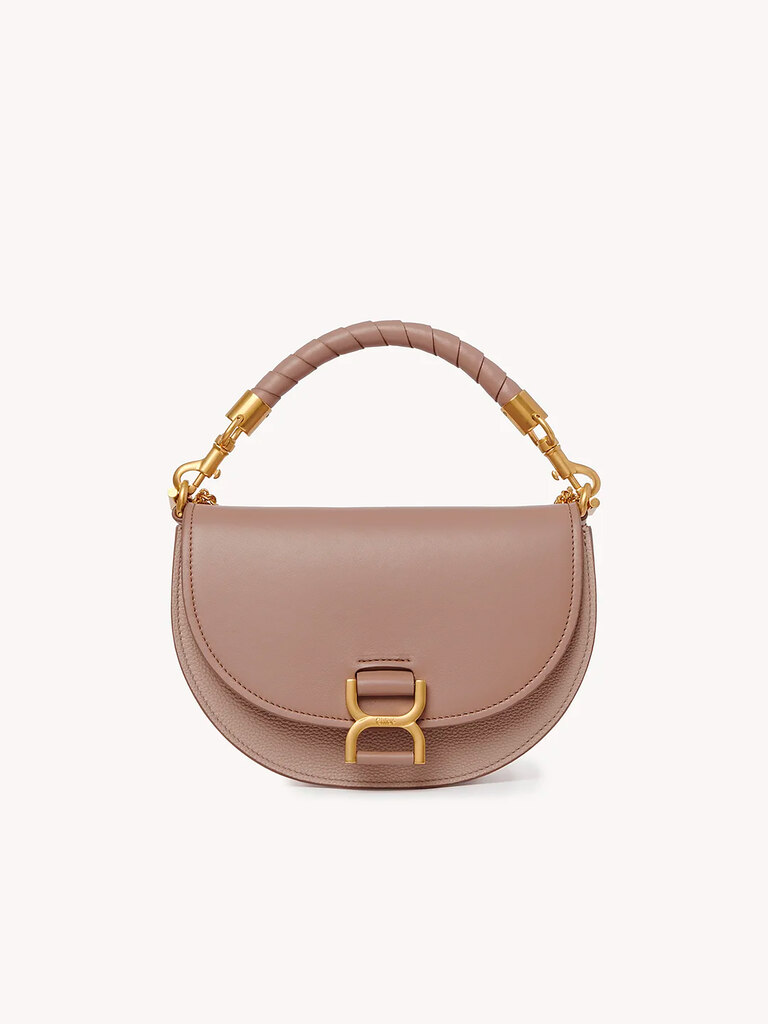 A Marcie Bucket Bag apresenta shape baldinho e reúne detalhes que remetem à linha original: cintos de couro, ferragem dourada e alça trançada à mão. Já a Marcie Chain Flap surge em forma de meia-lua, combinando couro texturizado e liso com laterais de camurça. A alça tátil e o fecho frontal traduzem a essência Chloé.