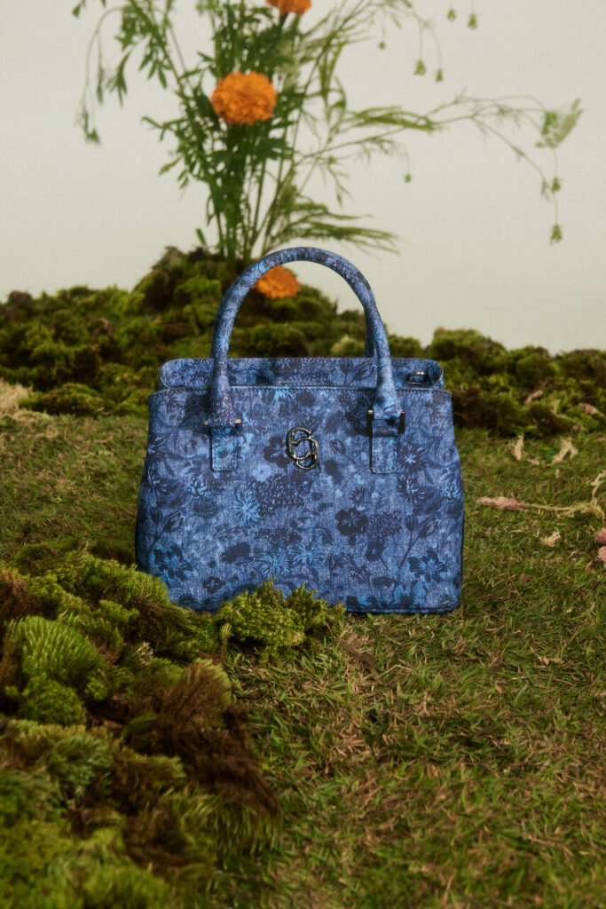 Além dos desenhos em azul, as peças transitam em uma paleta sóbria, com tons como o pinhão, o preto e o pewter. Dois modelos de bolsas em variações de cores também surgem, promovendo uma coleção completa e versátil.