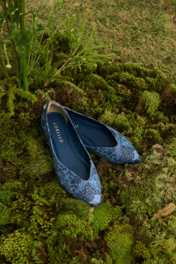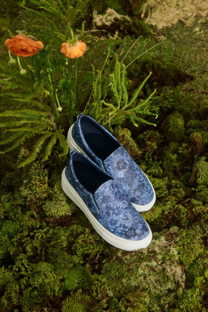 Para a família com estética mais feminina e leve, a grife criou especialmente para esta coleção um jeans exclusivo com a estampa em tons de azul, que combina diferentes flores. Seguindo o mood, os detalhes também foram pensados para incorporar um toque girly, como fivelas delicadas e laços, em modelos românticos, como o mary jane.