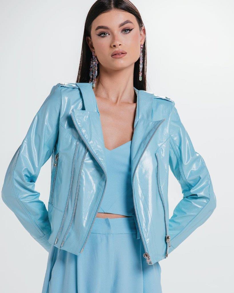 O tecido, que dá sensação de espelhado, é ótimo para as peças mais justas e festivas. As minissaias e jaquetas são destaque quando falamos do acabamento em vinil, já que permite uma modelagem moderna e atemporal. O couro envernizado no tom de preto é o queridinho das fashionistas – mas não fica por aí, os tons de azul royal e rosa chiclete estão vindo com tudo.