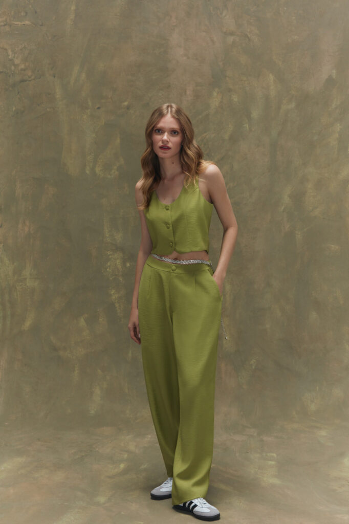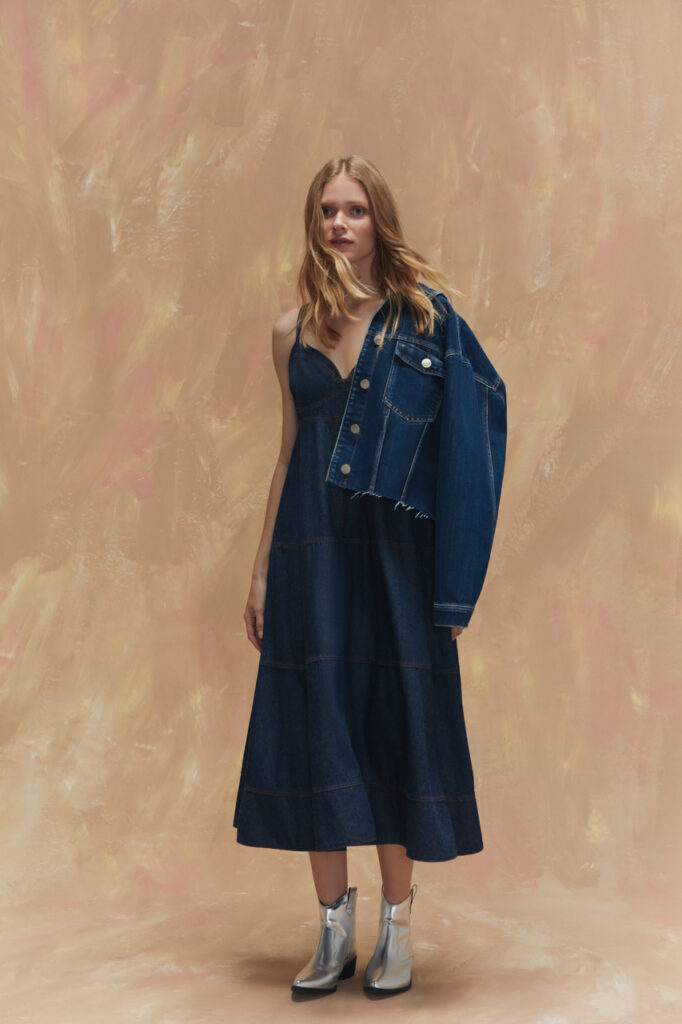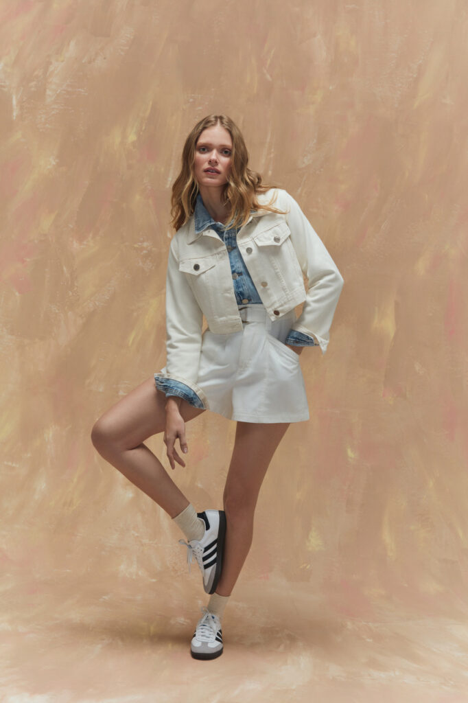 Já a paleta de cores dos lançamentos foi inspirada no entardecer da primavera, que transita entre tons terrosos, com verde militar e terracota e tons mais suaves, com amarelo e coral, além do contraste dos metalizados com o denim.