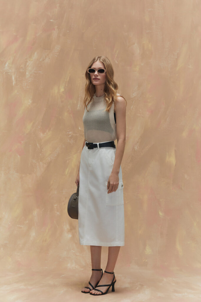 Peças em alta também compõem o mix de produtos do lançamento: saias plissadas, saias tubinho, rendas, blusas de tricoline, sapatilhas, mocassins e os queridinhos das clientes AMARO: trench coats e saias midi.
