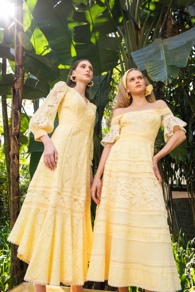Aviamentos, babados e tons vibrantes protagonizam peças a partir da delicadeza da renda