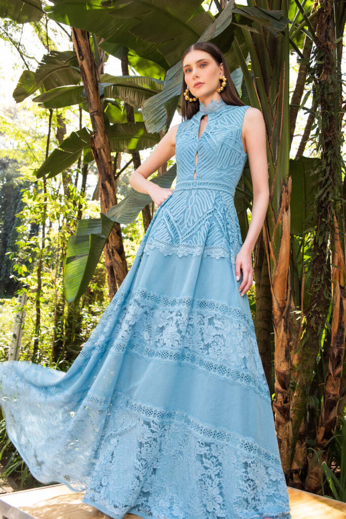Por fim, além de diferentes opções para o dia a dia, a marca referência em moda festa não poderia deixar de apresentar vestidos para momentos festivos e formais. Com comprimento longo, as peças chegam com mangas em camada, volumosas, ombro a ombro e tomara que caia, além de diferentes decotes e golas altas.