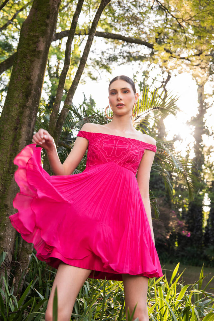 “Para dar início à Manacá, apresentamos uma proposta diferente para a mulher Martha Medeiros com uma estampa aquarelada exclusiva em seda e chiffon, com um match de rendas. Agora, com a linha completa, lançamos uma variedade de estilos, modelagens e cores, com foco na versatilidade da renda, seja ela sozinha ou aplicada em diferentes tecidos.”, compartilha Gabriela Medeiros, nome à frente da label.