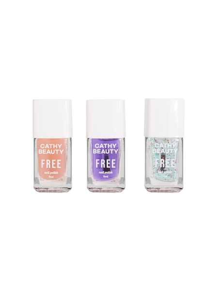 Os esmaltes são livres de vários componentes prejudiciais, mantendo a identidade da Cathy Beauty em uma versão sem esses elementos e contêm óleo de coco para hidratação e um brilho duradouro com efeito de gel. Além do kit de tratamento, a coleção apresenta três conjuntos de cores alinhados com as tendências atuais.