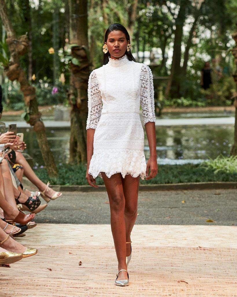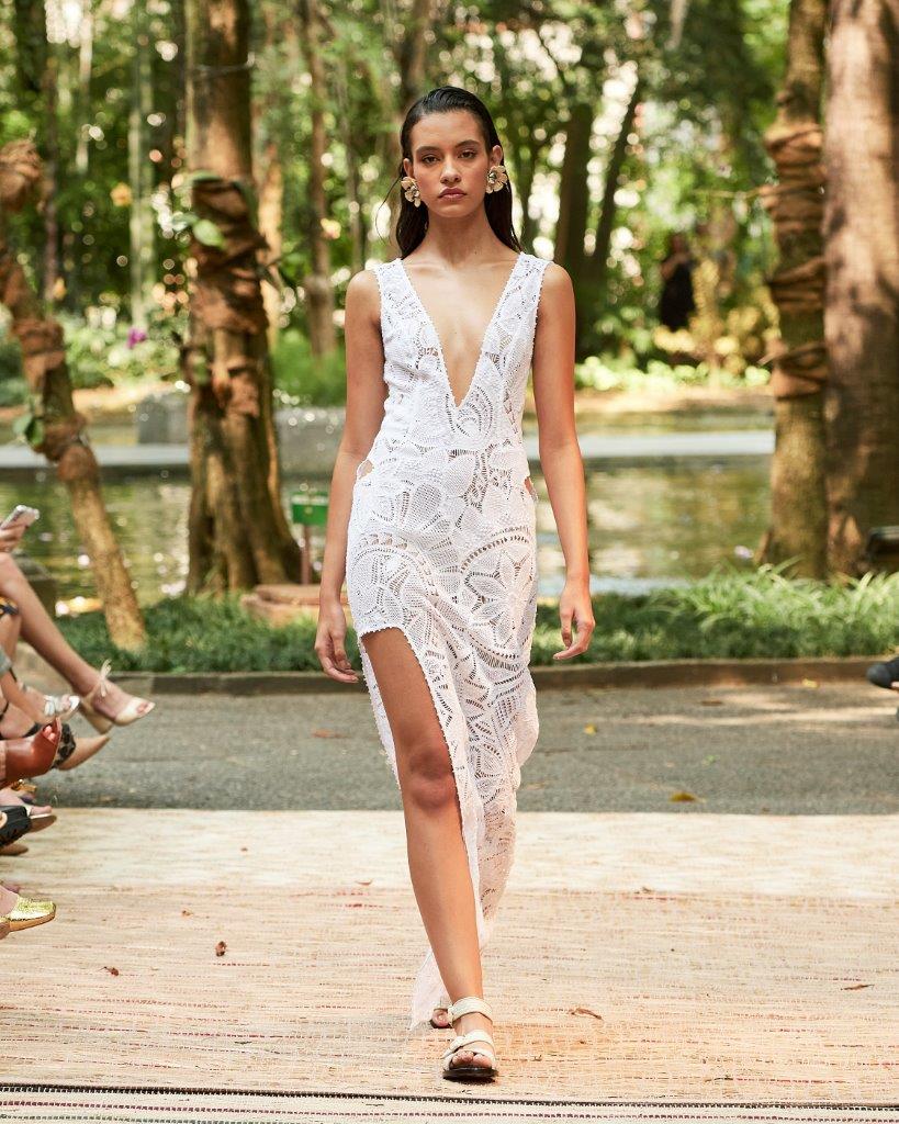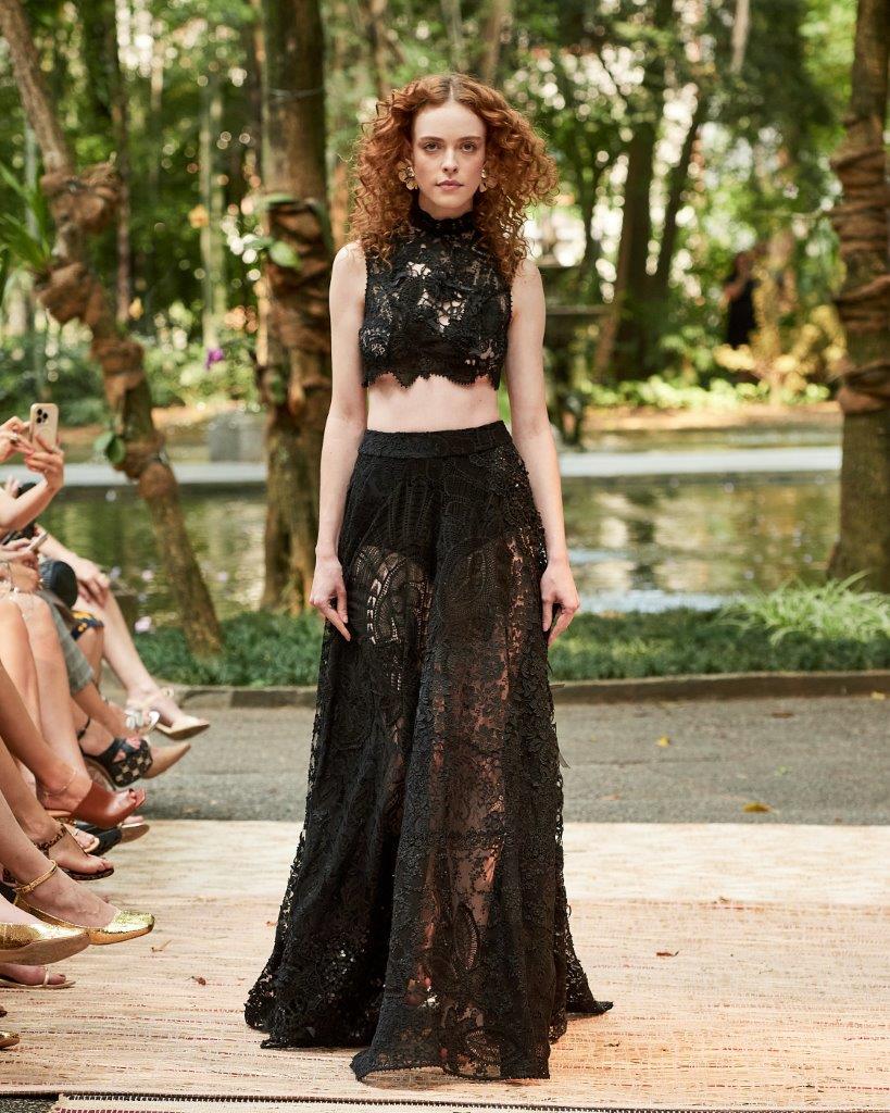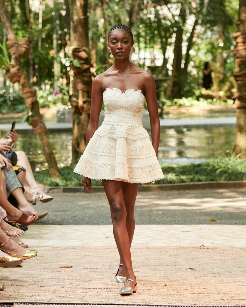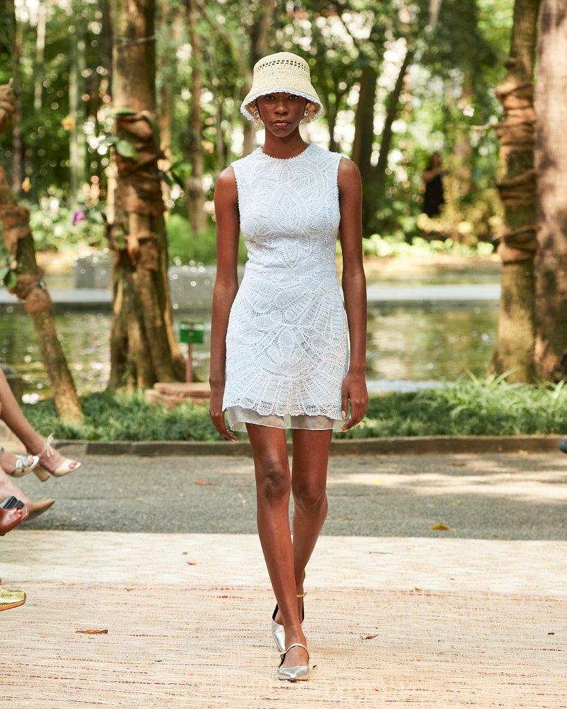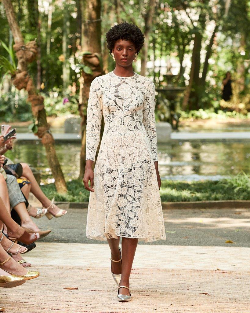 A forte presença da transparência, o contraste de cores em patchwork, golas altas, babados e mangas bufantes tomaram conta da passarela. Os grandes destaques ficam por conta de vestidos vazados construídos por patchwork, além de rendas brancas com aplicação de bordado preto. Os comprimentos variam entre o mini, midi e longo, abraçando diferentes possibilidades e ocasiões. Assim, sua paleta neutra garante variedades clássicas e atemporais, com a proposta de vida longa para que passem por gerações.