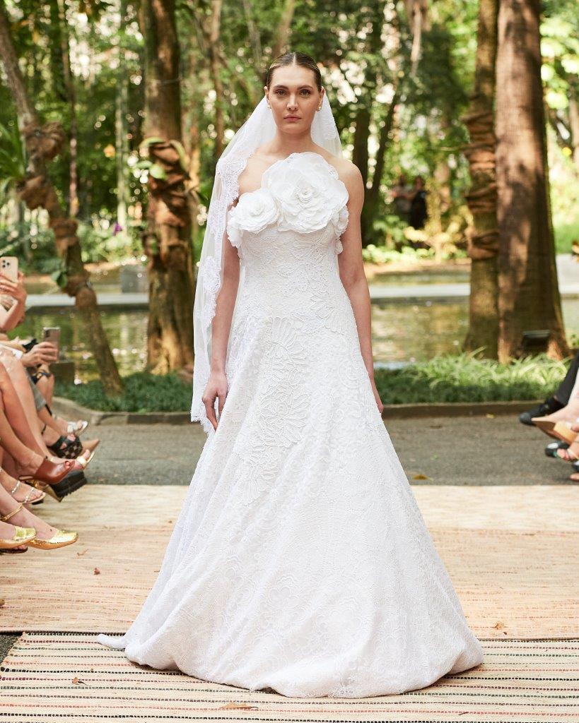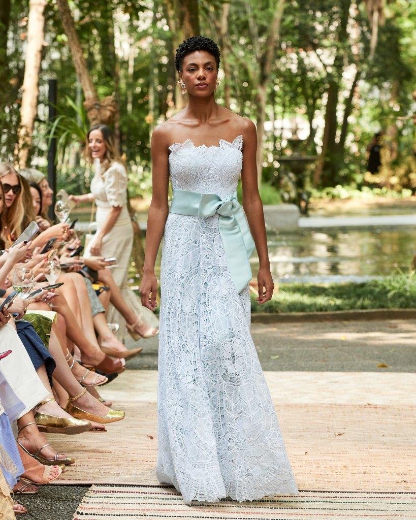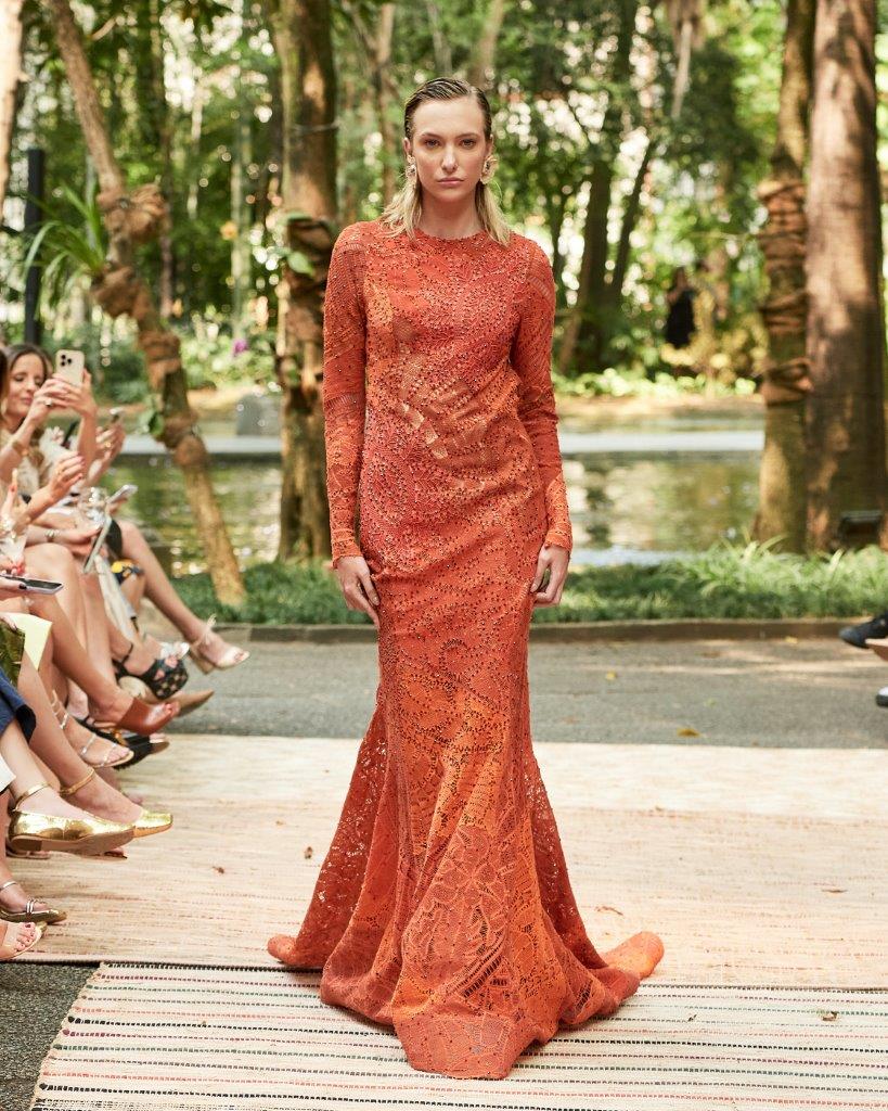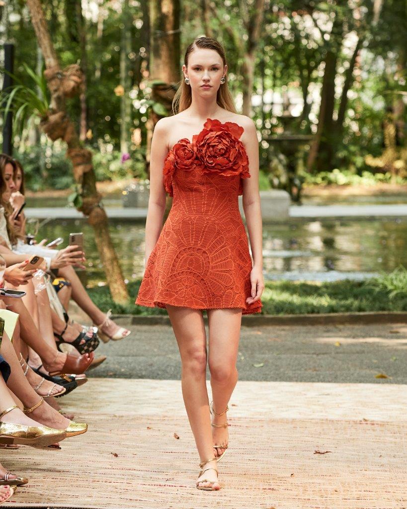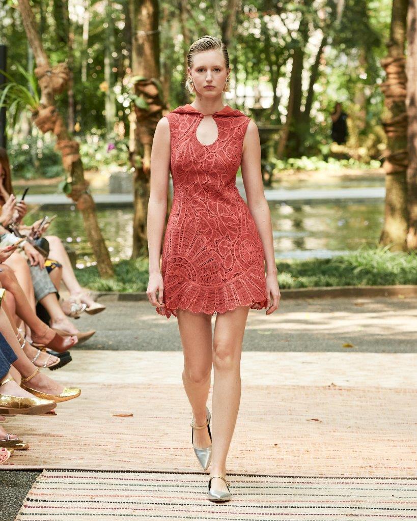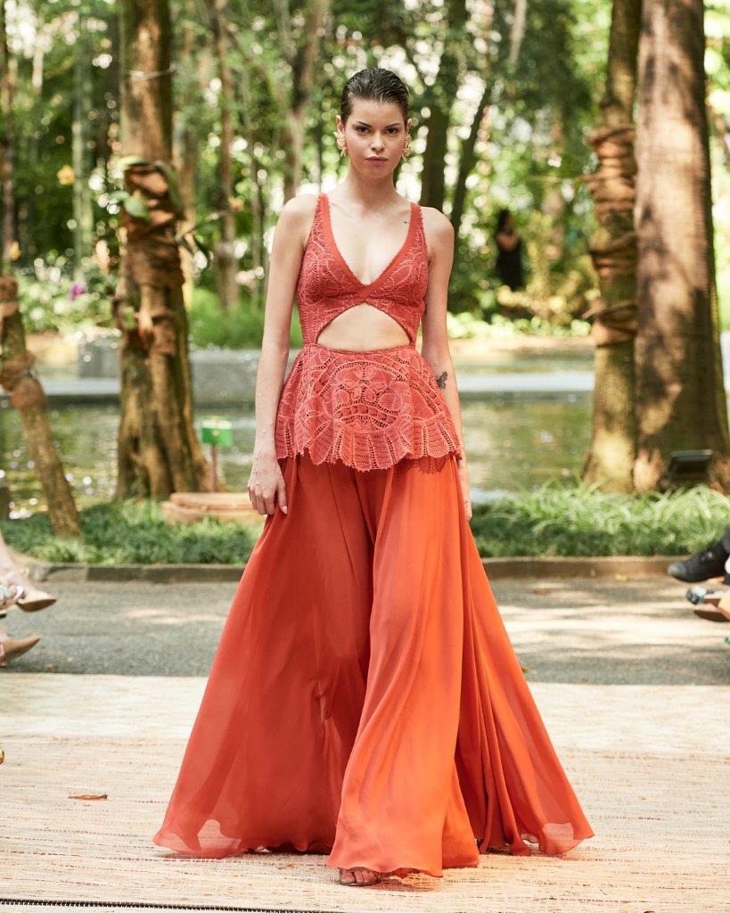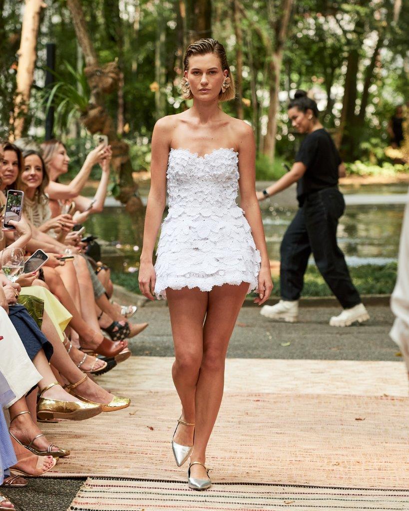 A forte presença da transparência, o contraste de cores em patchwork, golas altas, babados e mangas bufantes tomaram conta da passarela. Os grandes destaques ficam por conta de vestidos vazados construídos por patchwork, além de rendas brancas com aplicação de bordado preto. Os comprimentos variam entre o mini, midi e longo, abraçando diferentes possibilidades e ocasiões. Assim, sua paleta neutra garante variedades clássicas e atemporais, com a proposta de vida longa para que passem por gerações.